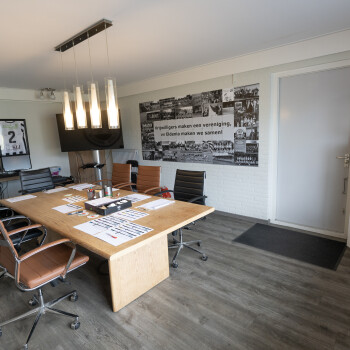 De bestuurskamer is voorzien van een grote tafel met stoelen, verrijdbaar TV-scherm, computer en WiFi en is geschikt voor 6-8 personen.