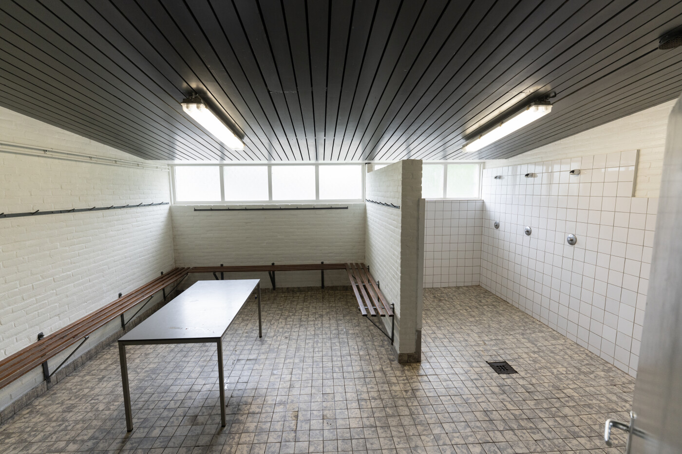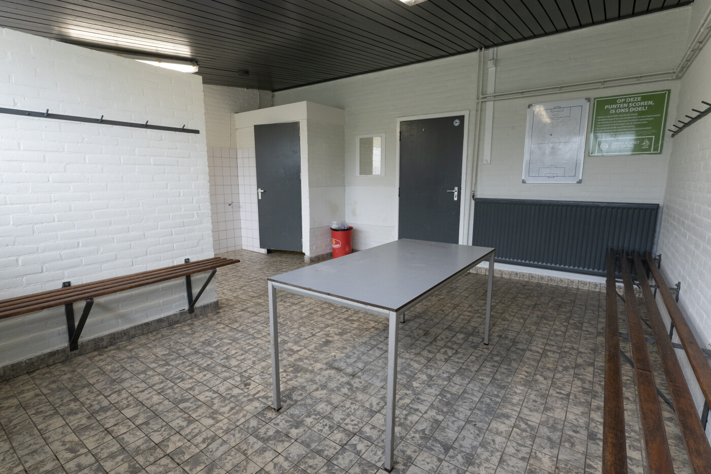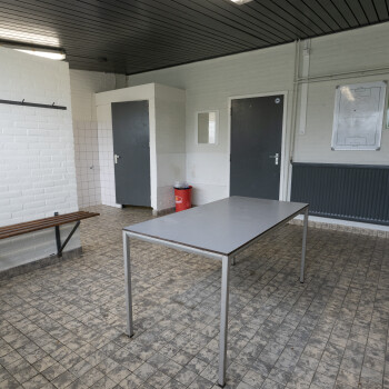 Wij hebben in totaal 14 kleedkamers die zijn geschikt voor ca. 14-18 personen. Alle kleedkamers zijn voorzien van banke, kapstok, douches, wastafel. Apart toilet ??