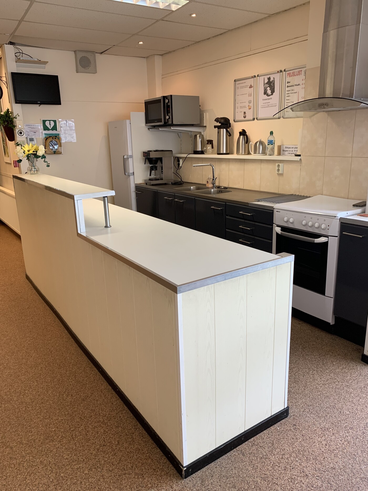 Koffie/thee (zelf zetten) is tegen vergoeding mogelijk, zelf meenemen is toegestaan.