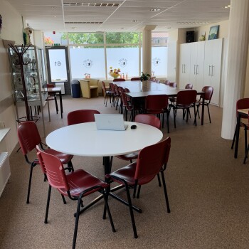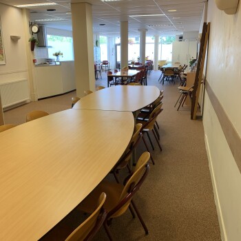 De Ontmoetingsruimte is een ruime plek voor bijvoorbeeld vergaderingen, (creatieve) bijeenkomsten etc. en is geschikt voor ruim 60 personen.