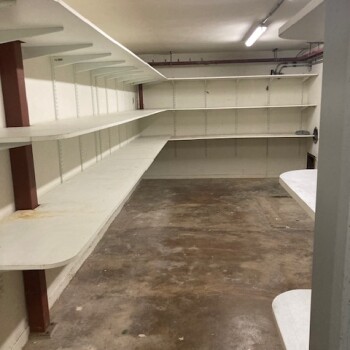 De opslagruimte ligt in de kelder van de school (te bereiken per trap). Wij verhuren deze schapruimte per strekkende meter en er mag/kan alleen materiaal worden opgeslagen dat is verpakt in dozen/kratten die zijn voorzien van labels.