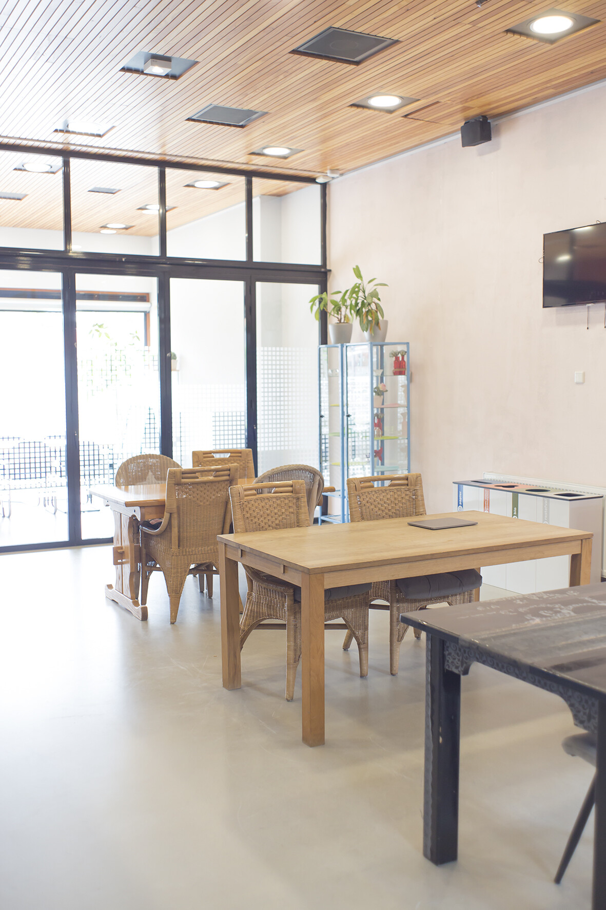De ontmoetingsruimte is een open ruimte geschikt voor ca. 15 personen en is voorzien van tafels/stoelen (en een bar zonder voorzieningen).