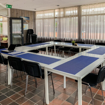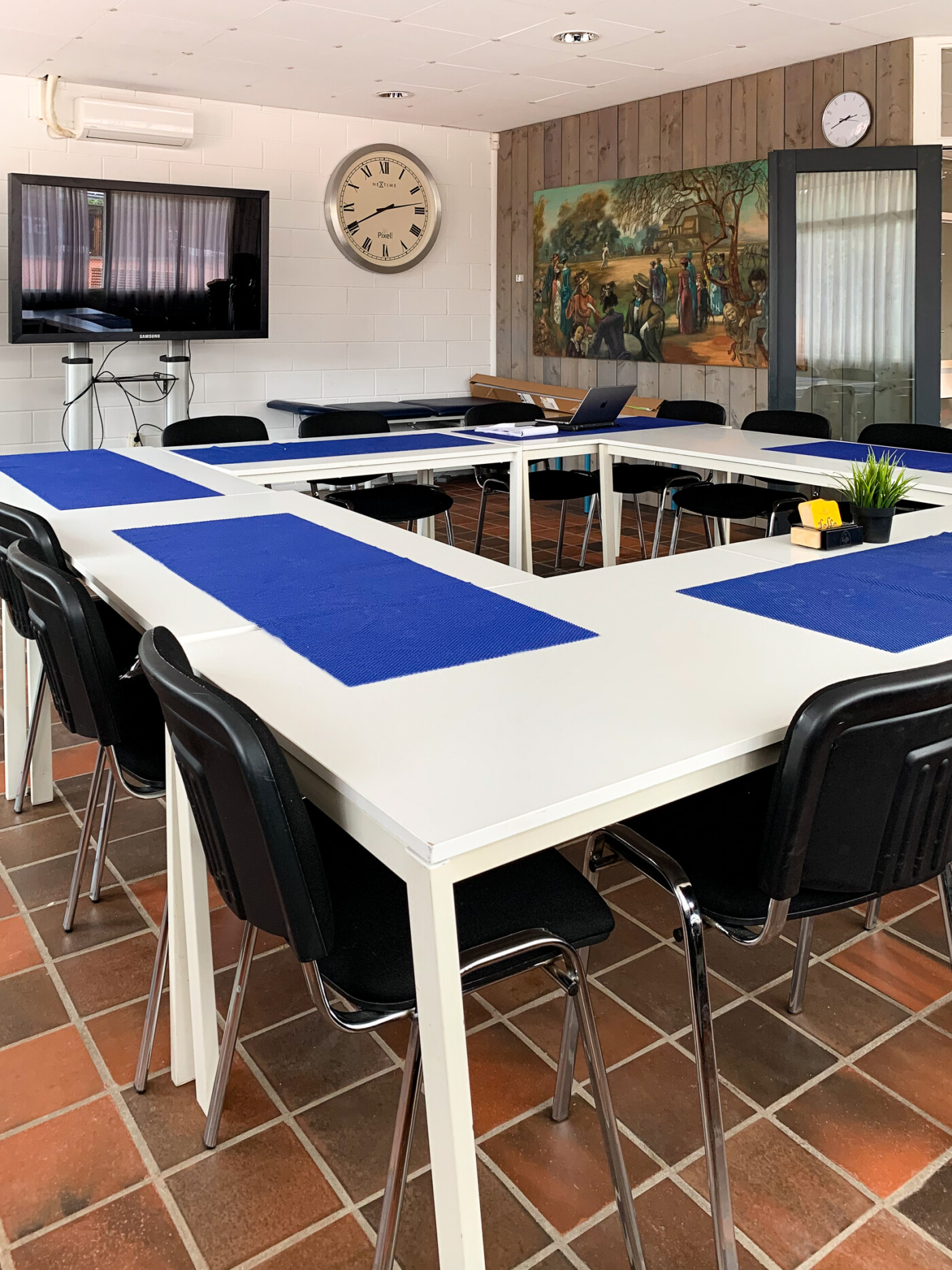 Onze vergaderruimte is voorzien van tafels, stoelen (in meerdere opstellingen neer te zetten), groot verrijdbaar TV-scherm met HDMI-aanlsuiting, whiteboard, flipover, airco, en WiFi. De ruimte is geschikt voor ca. 15-20 personen afhankelijk van de tafelopstelling. Tevens hebben wij een buitenterras waarvan bij goed weer gebruik gemaakt kan worden.