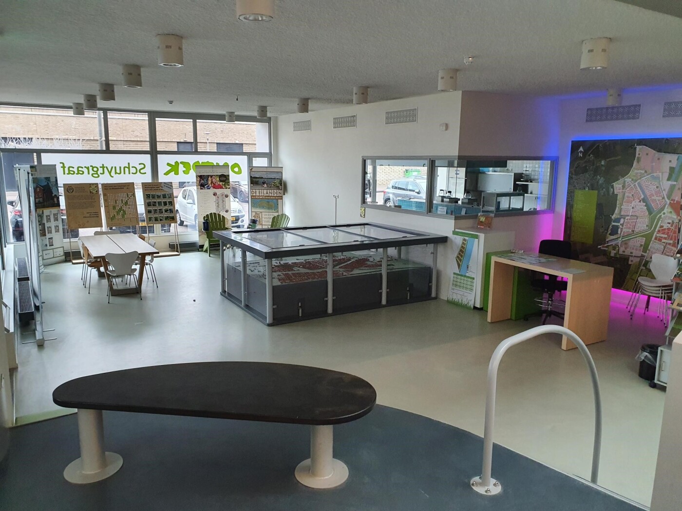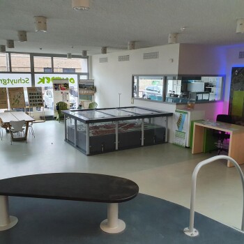 Het infocentrum is een open ruimte en grenst aan de centrale hal. De ruimte is voorzien van tafels en stoelen en is geschikt voor ca. 20 personen. Er is geen WiFi aanwezig.