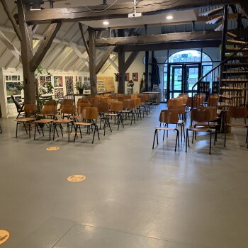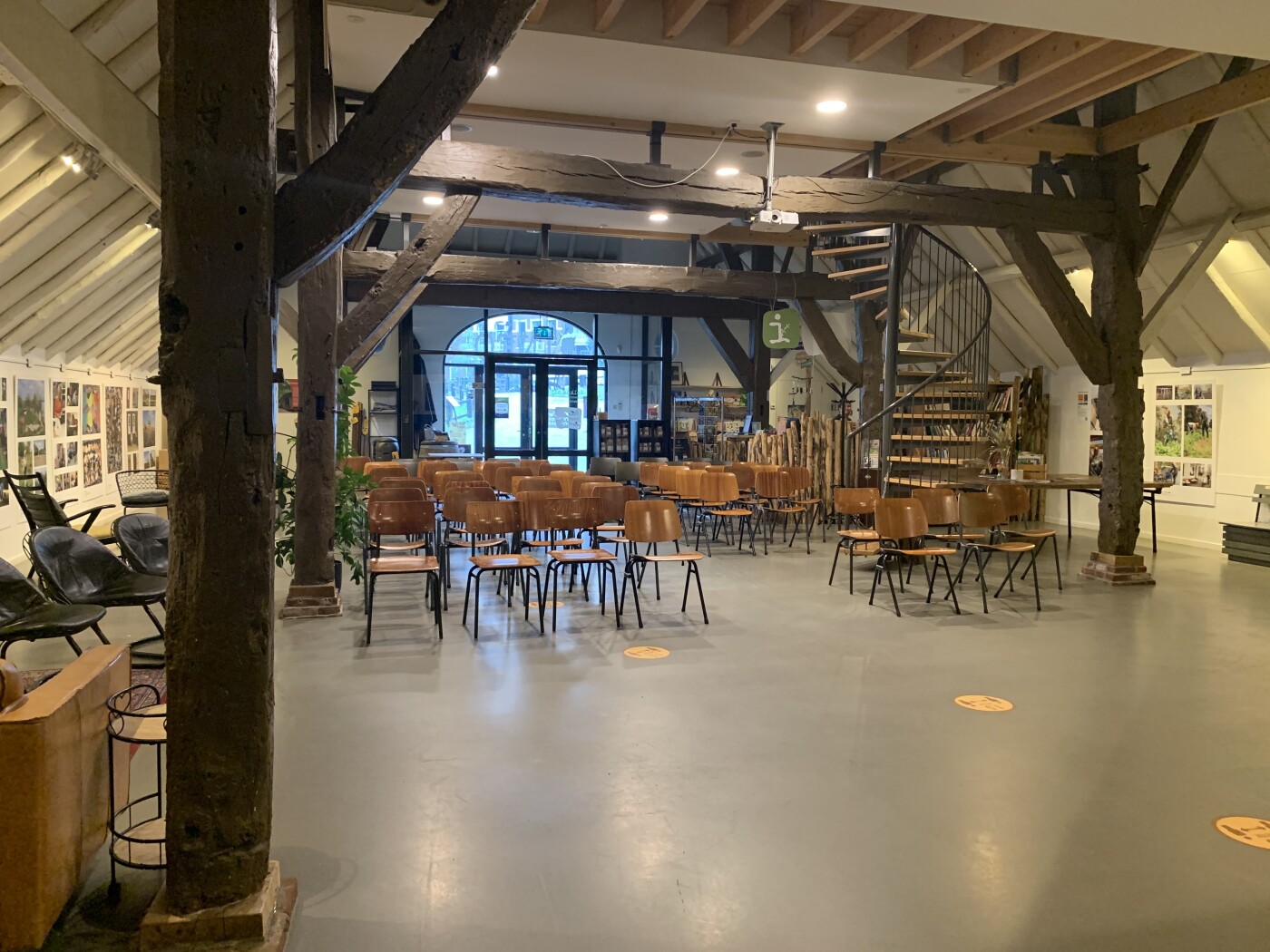 De Molenschuur is de grote sfeervolle ruimte op de begane grond in ons gebouw. Hier is het bezoekerscentrum gevestigd. Deze ruimte is met name geschikt voor het geven van lezingen, presentaties etc. In deze ruimte staan tafels en stoelen en is verder van alle gemakken voorzien, zoals: