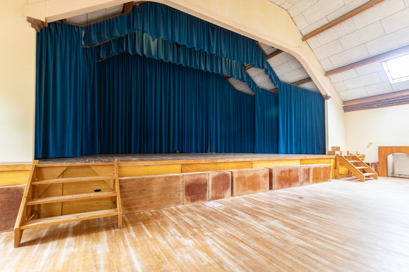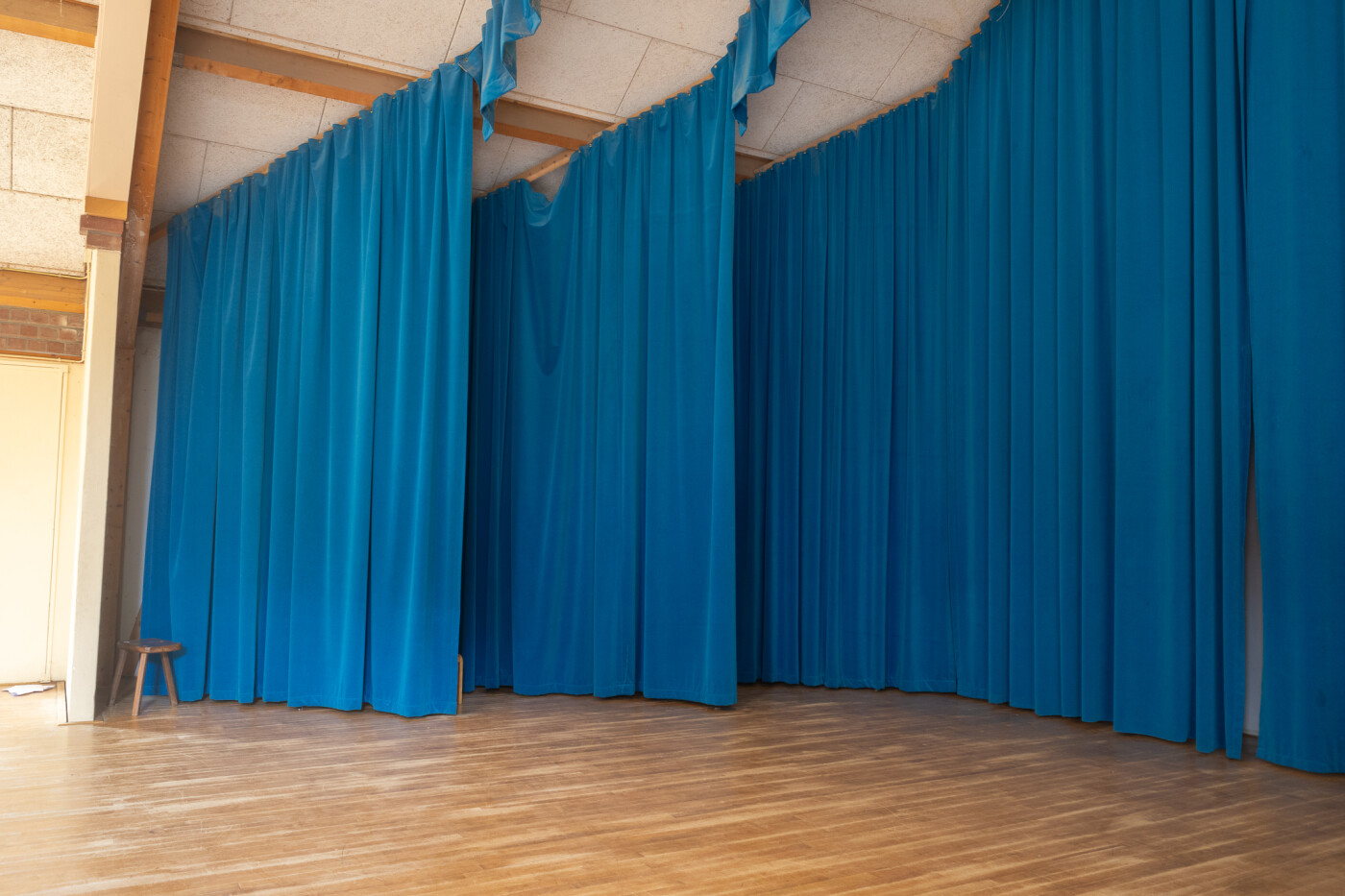 De Theaterzaal is een grote zaal (voorzien van Wifi) met een verhoogd podium, coulissen en toneelgordijnen. Er zijn ruim voldoende stoelen aanwezig. De ruimte is geschikt voor max. 125 personen. Dit is mede afhankelijk van de aard van de activiteit.
