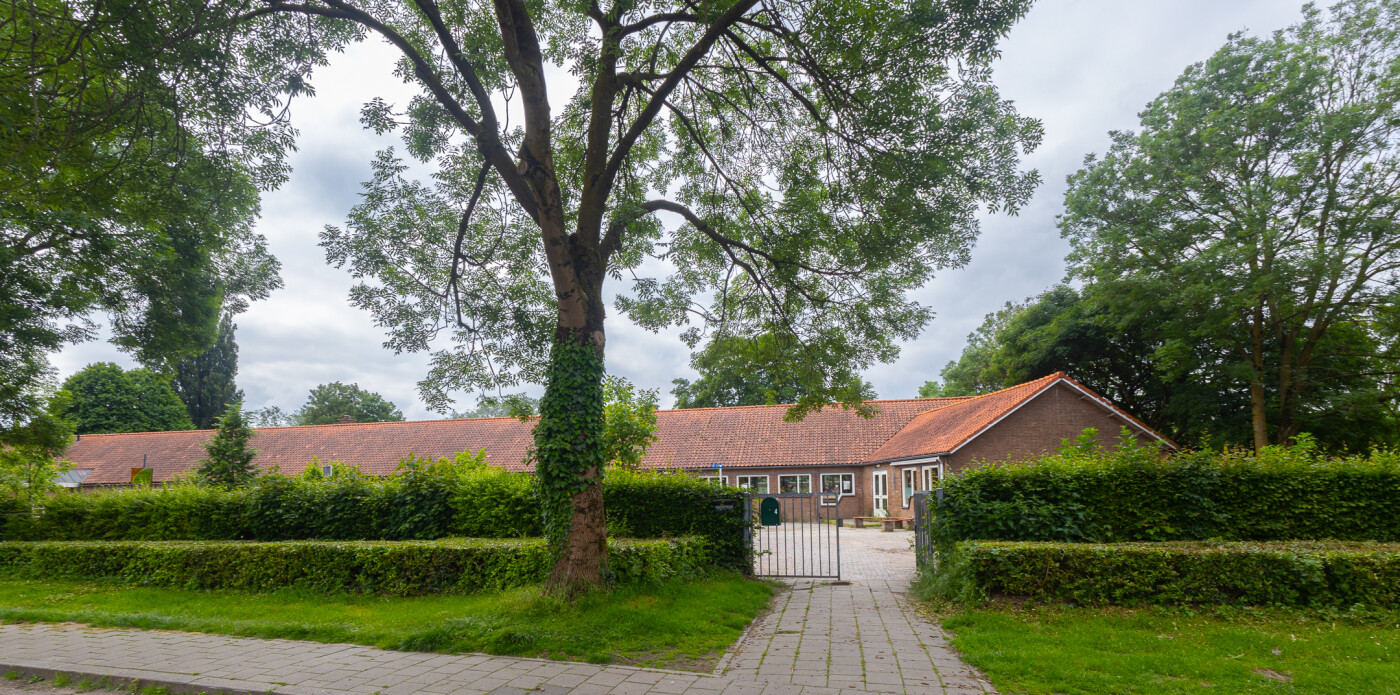De Buitenruimte/schoolpleinen zijn voorzien van bestrating, beplanting, struiken en bomen en is volledig met een hekwerk afgesloten. Er zijn diverse speelplekken.