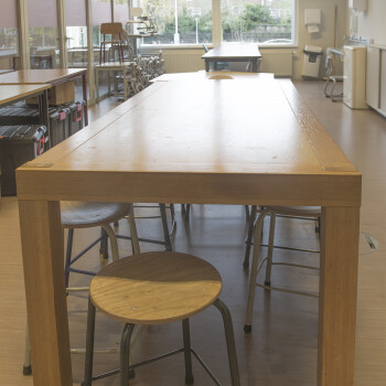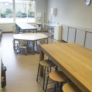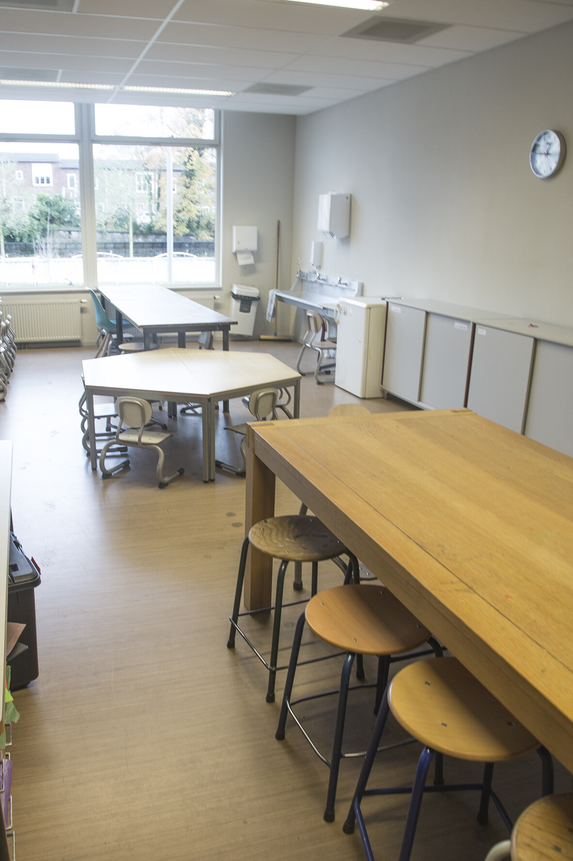Het creatieflokaal ligt op de 1e verdieping (per trap/lift te bereiken) en is geschikt voor ca. 15 personen. Het lokaal is ingericht met werkbanken, tafels, stoelen (o.a. stoelen op kinderhoogte) en spoelbak.