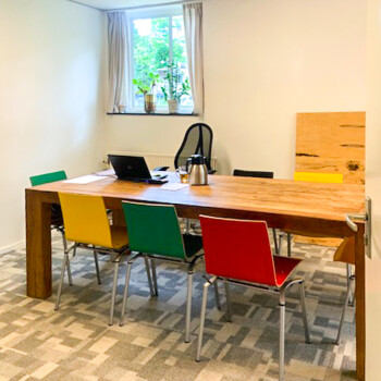Dit is een vergaderkamer (ligt op de begane grond) en biedt plaats aan 10 personen. De kamer is ingericht met één grote tafel met stoelen. Er kan gebruik gemaakt worden van een flip-over en wifi.