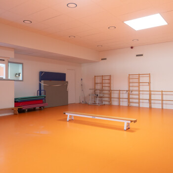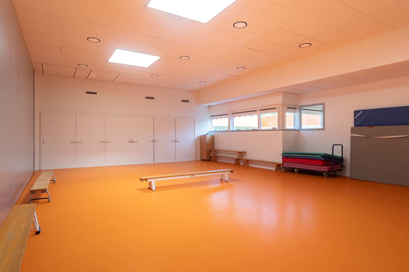 Het speellokaal ligt op de 1e verdieping (per trap en lift te bereiken) en is geschikt voor ca. 30 personen (afhankelijk van de soort activiteit). Het lokaal is voorzien van een epoxy-sportvloer met vloerverwarming en er staan enkele lage sportbanken. De ruimte mag alleen zonder schoeisel worden betreden.