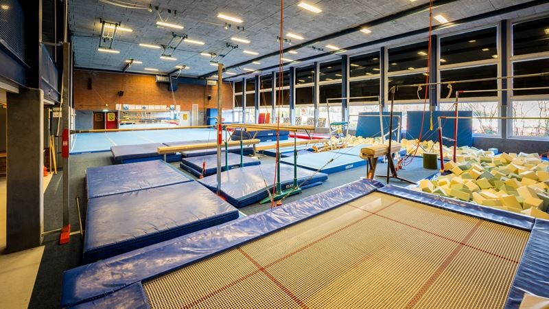 - is volledig ingericht met materiaal voor verschillende turndisciplines.