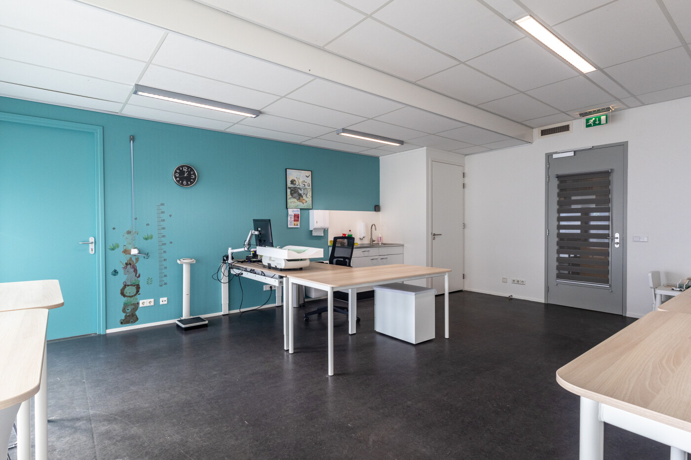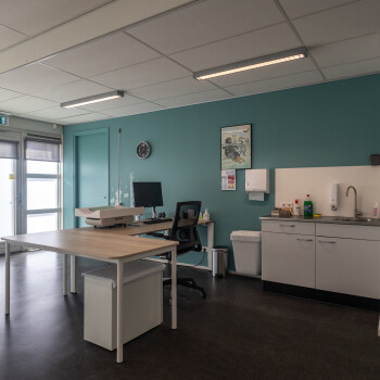 De veldzaal ligt op de begane grond en is geschikt voor ca. 6-8 personen. Deze is enkele dagen per week in gebruik door het consultatieburo.