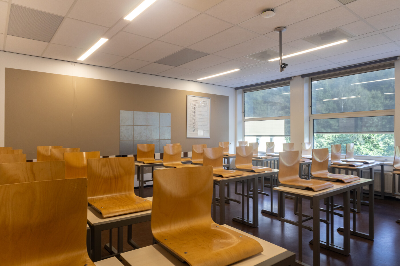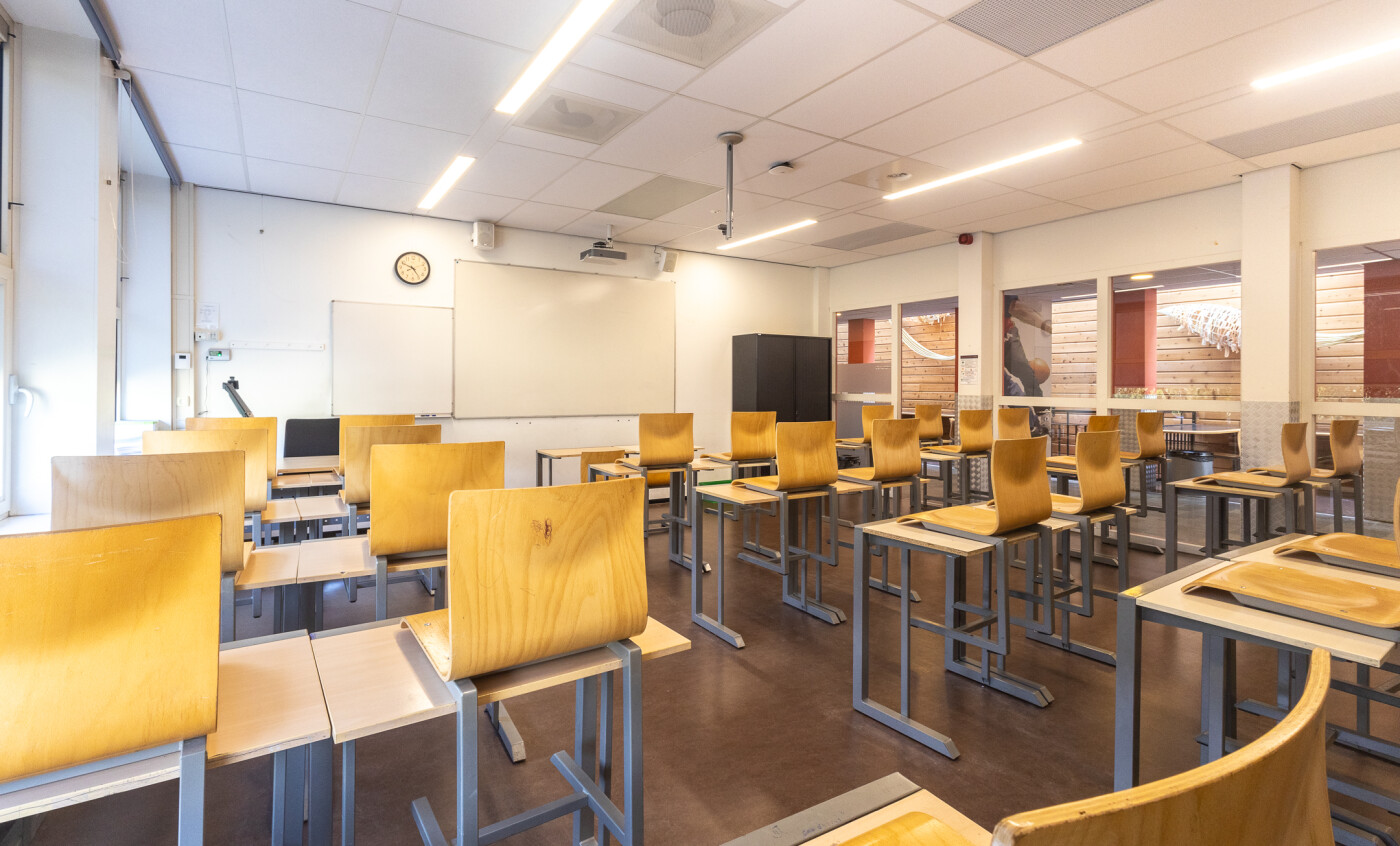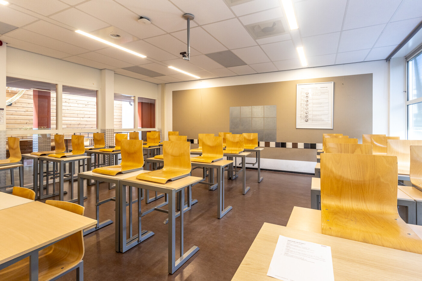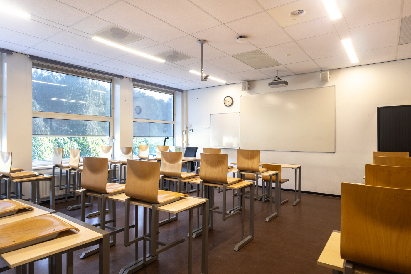 De diverse leslokalen (incl. computerlokaal) liggen voornamelijk op de eerste verdieping en hoger (per trap of lift te bereiken). De lokalen zijn ingericht met schoolmeubilair (schooltafes en stoelen), whiteboard, beamer, geluidsinstallatie en wifi. De lokalen zijn geschikt voor 30 personen.