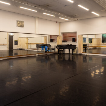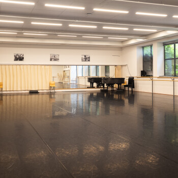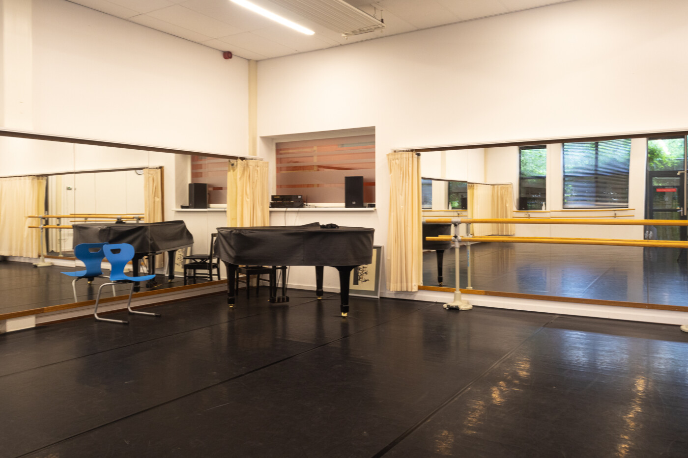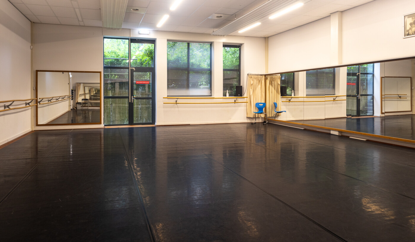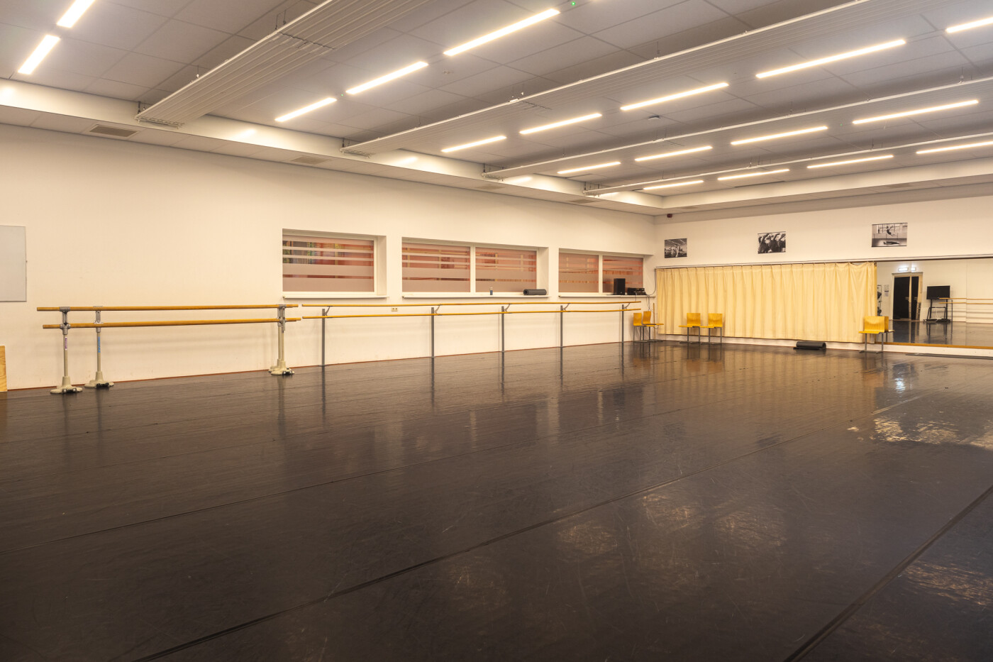 Beide danszalen zijn voorzien van: zwevende houten dansvloer, spiegelwand met gordijnenen, barres, vleugel, geluidsinstallatie en wifi.