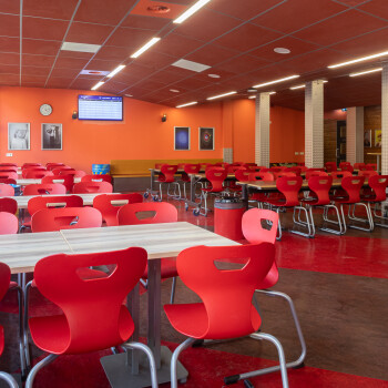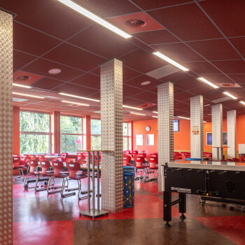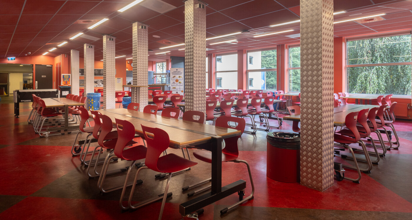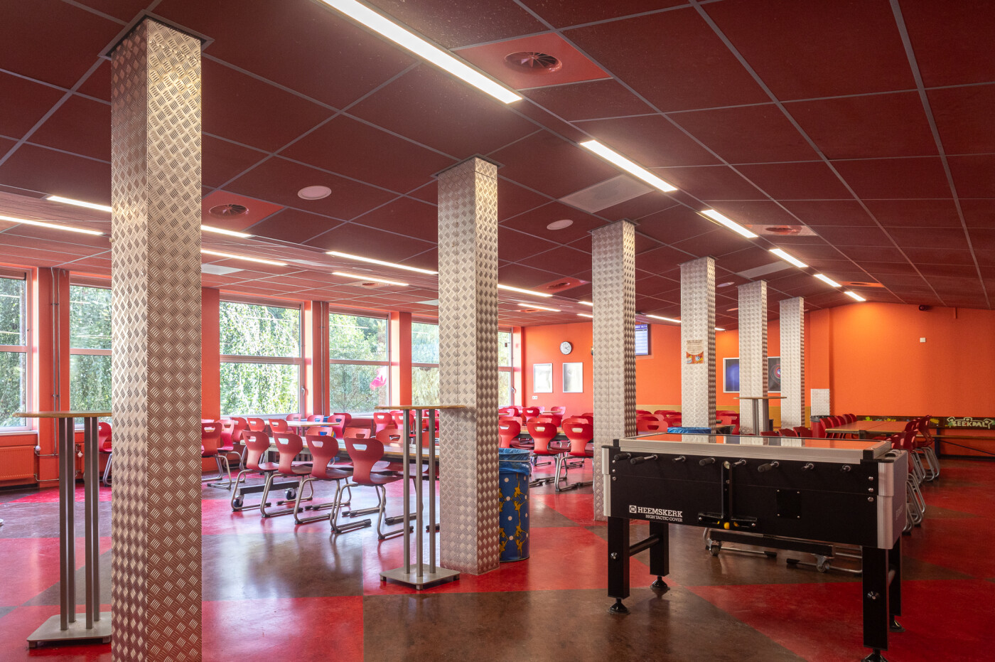 De rode kantine is zoals de naam al aangeeft is een rood gekleurde ruimte die als kantine wordt gebruikt. De ruimte is geschikt voor ca. 60 personen en is ingericht met tafels, stoelen en er is een keukentje met (met bar/balie) en er is tevens wifi en klimaatbeheersing aanwezig.