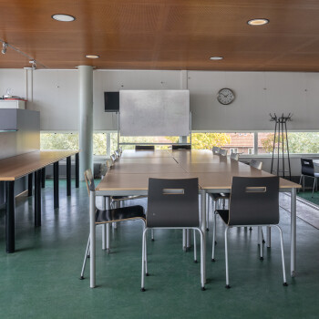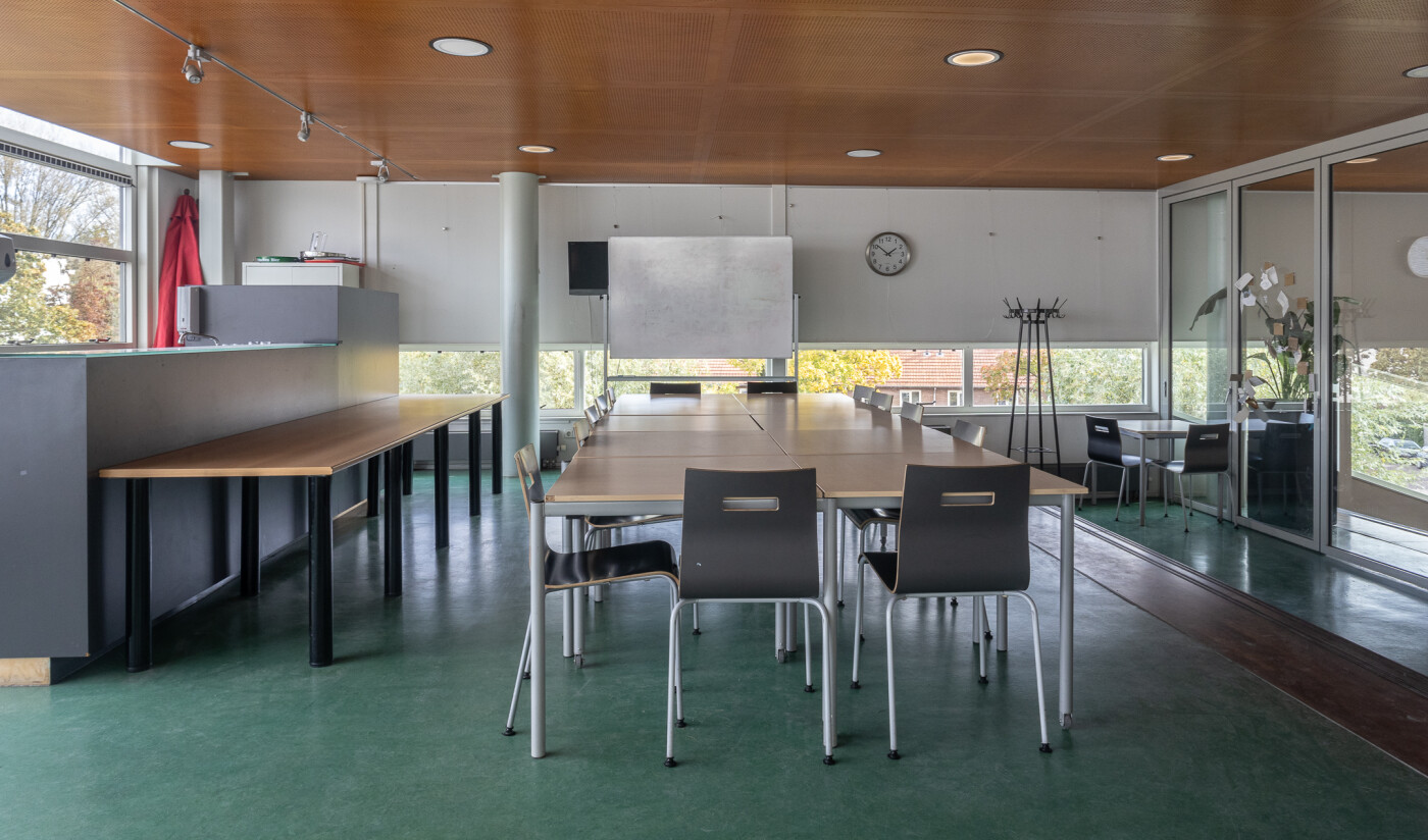 Let op: deze ruimte grenst aan de gangen waarvan schoolkinderen ook gebruik maken. U kunt dus enige geluidshinder ervaren.