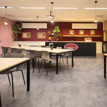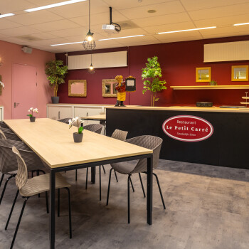 Ons "restaurant" Le Petit Carré ligt op de begane grond en is geschikt voor ca. 30 personen. Deze ruimte wordt vaak als "restaurant" gebruikt, maar kan ook als vergaderruimte of presentatieruimte worden gebruikt. Het restaurant is eventueel samen te huren met de keuken (tegen meerprijs), waarna de gerechten in deze ruimte kunnen worden geserveerd en genuttigd.