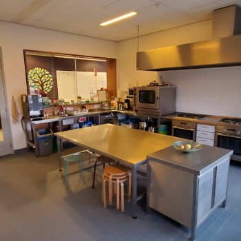 De keuken is beschikbaar tussen 9.00uur 's morgens en 22.00uur 's avonds en is geschikt voor max. 8 personen. Het is een goed gefaciliteerde keuken, waarbij onder andere een kookplaat, oven en vaatwasser aanwezig zijn.