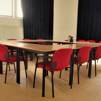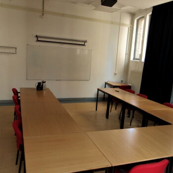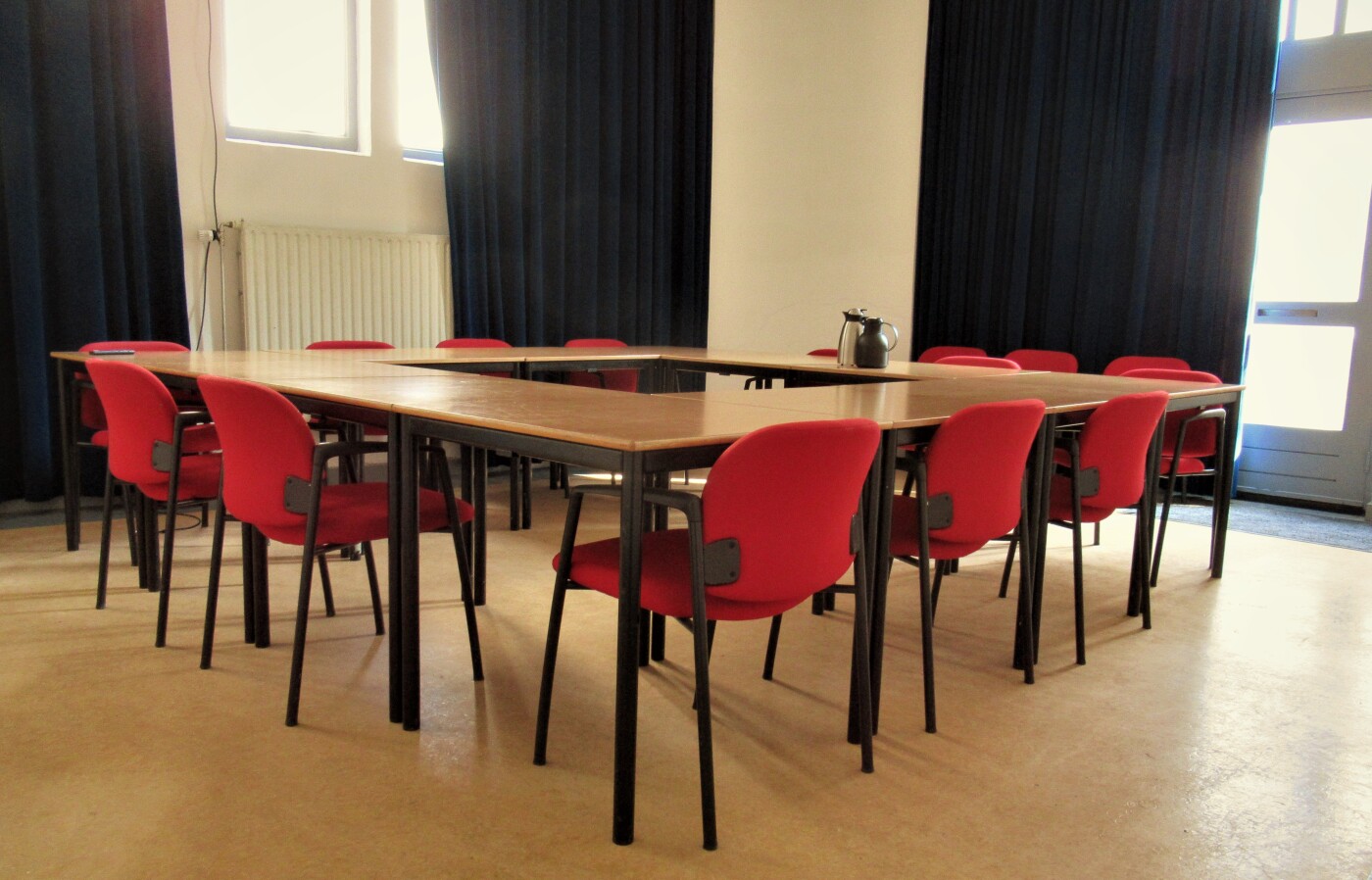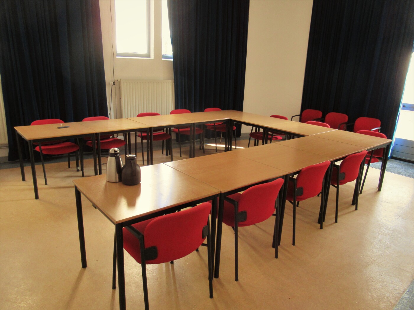 De ruimte is ingericht met schooltafels en stoelen en is geschikt voor max. 20 personen. Er is gratis wifi aanwezig en tegen meerprijs* is een beamer of TV en flipover te huur.