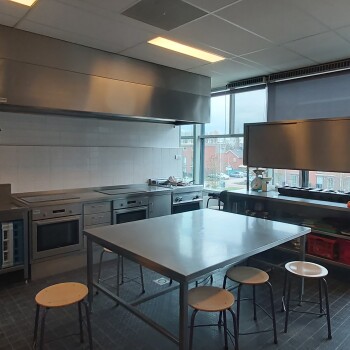 Op de 2e verdieping ligt de keuken (2.36). Dit is een goed gefaciliteerde keuken, voorzien van onder andere een kookplaten, ovens, vaatwasser, divers ander keukengerei en groot werkblad in het midden van de keuken (met zitkrukken) en is geschikt voor ca. 4 personen.