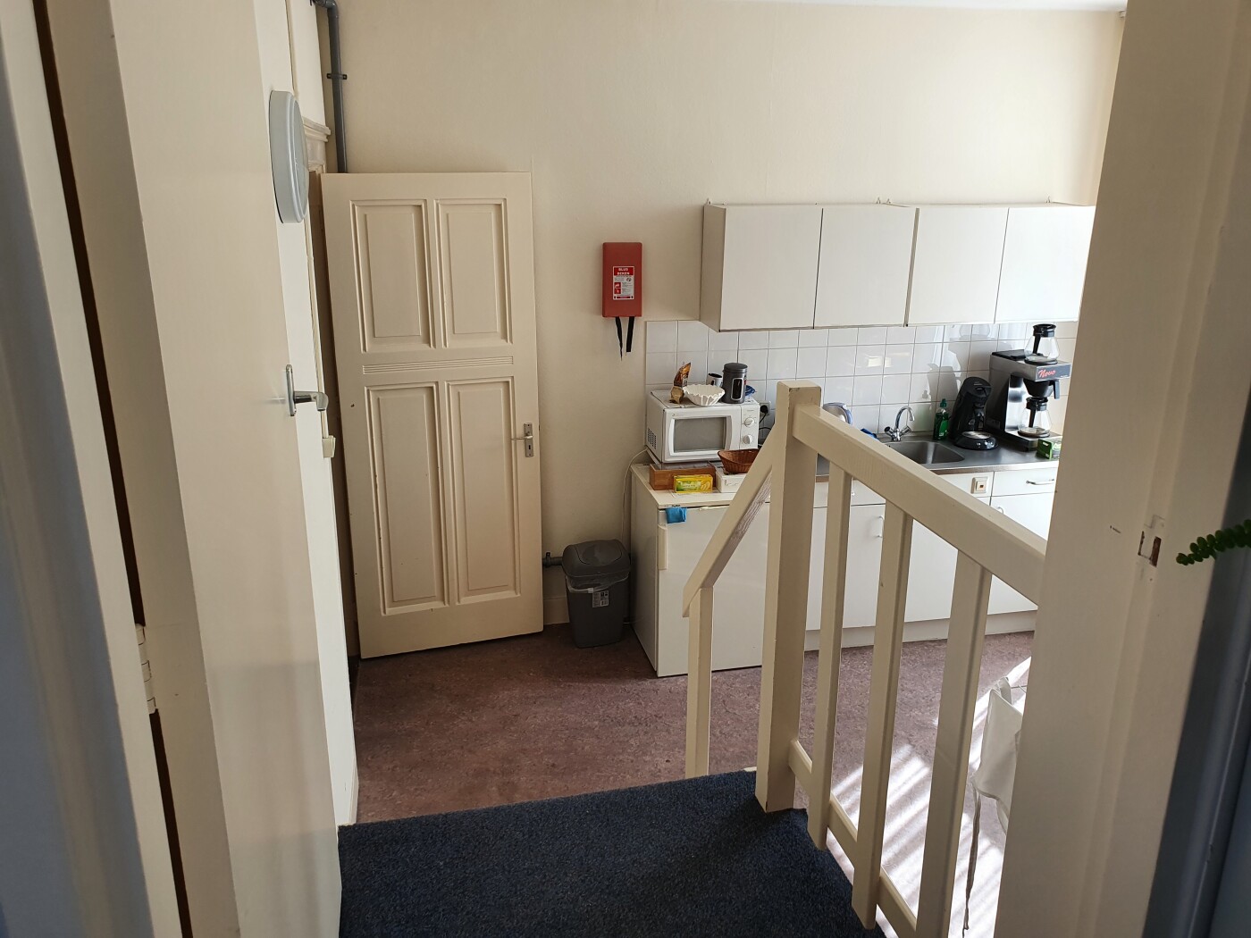 De bovenzaal is op de 1e verdieping en via de trap te bereiken.