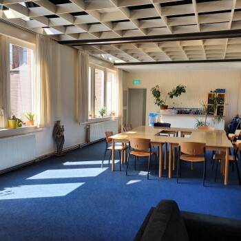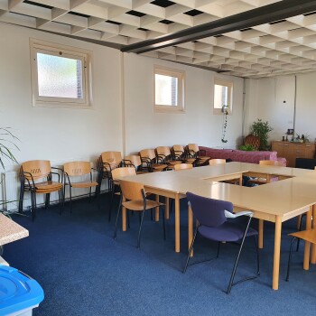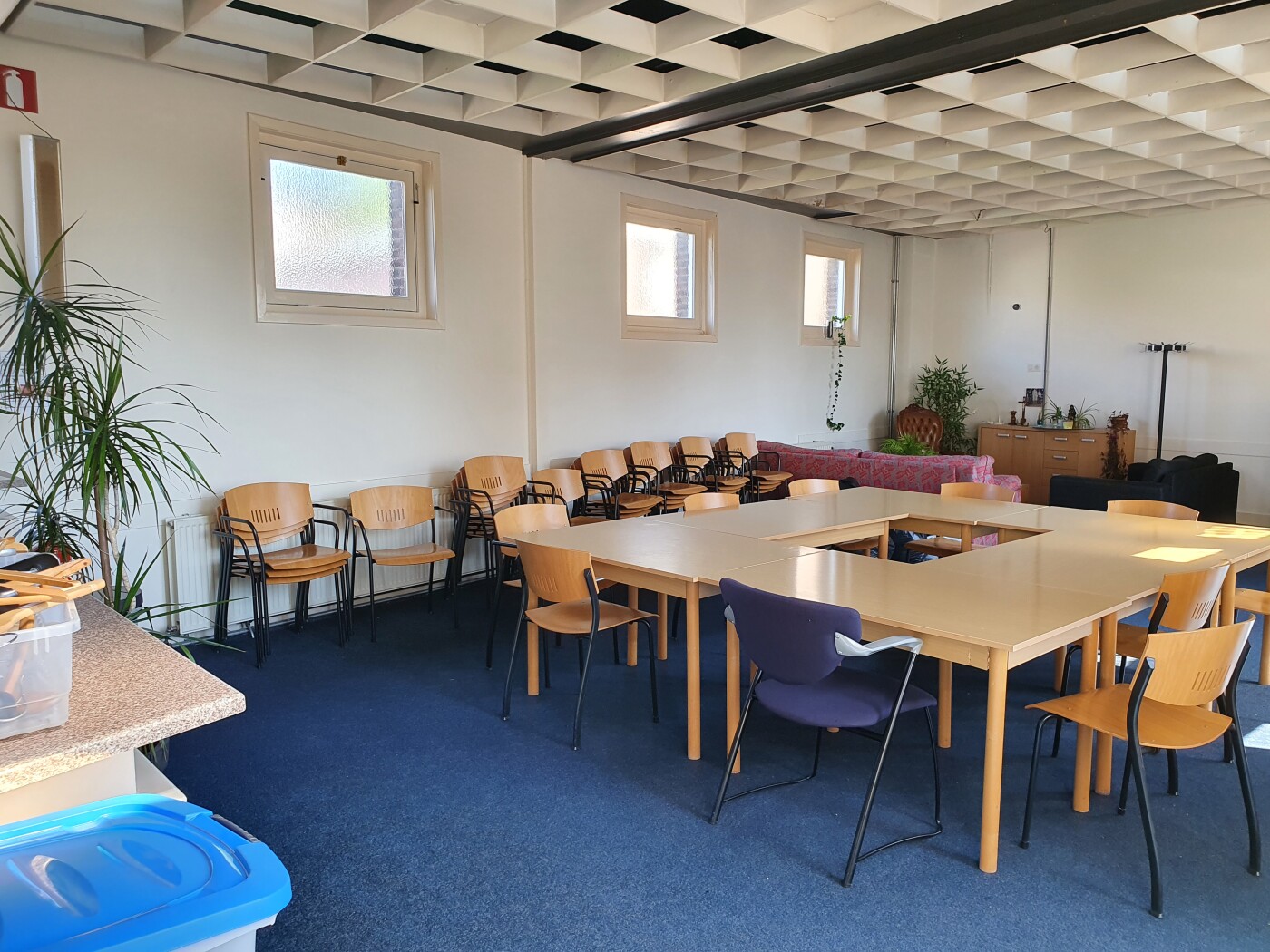 Het is een ruime zaal voorzien van 6 tafels die in meerdere opstellingen neer te zetten zijn. Er is plaats voor ca. 50 personen. In de ruimte is een klein keukenblok, flipover en ook nog een zitje (bankstel, stoel en salontafel) aanwezig.