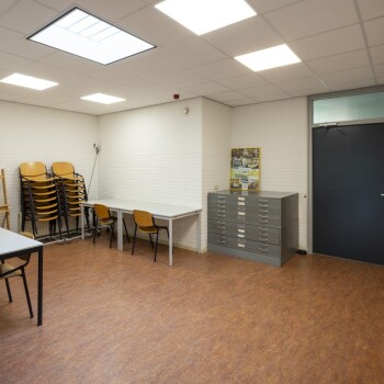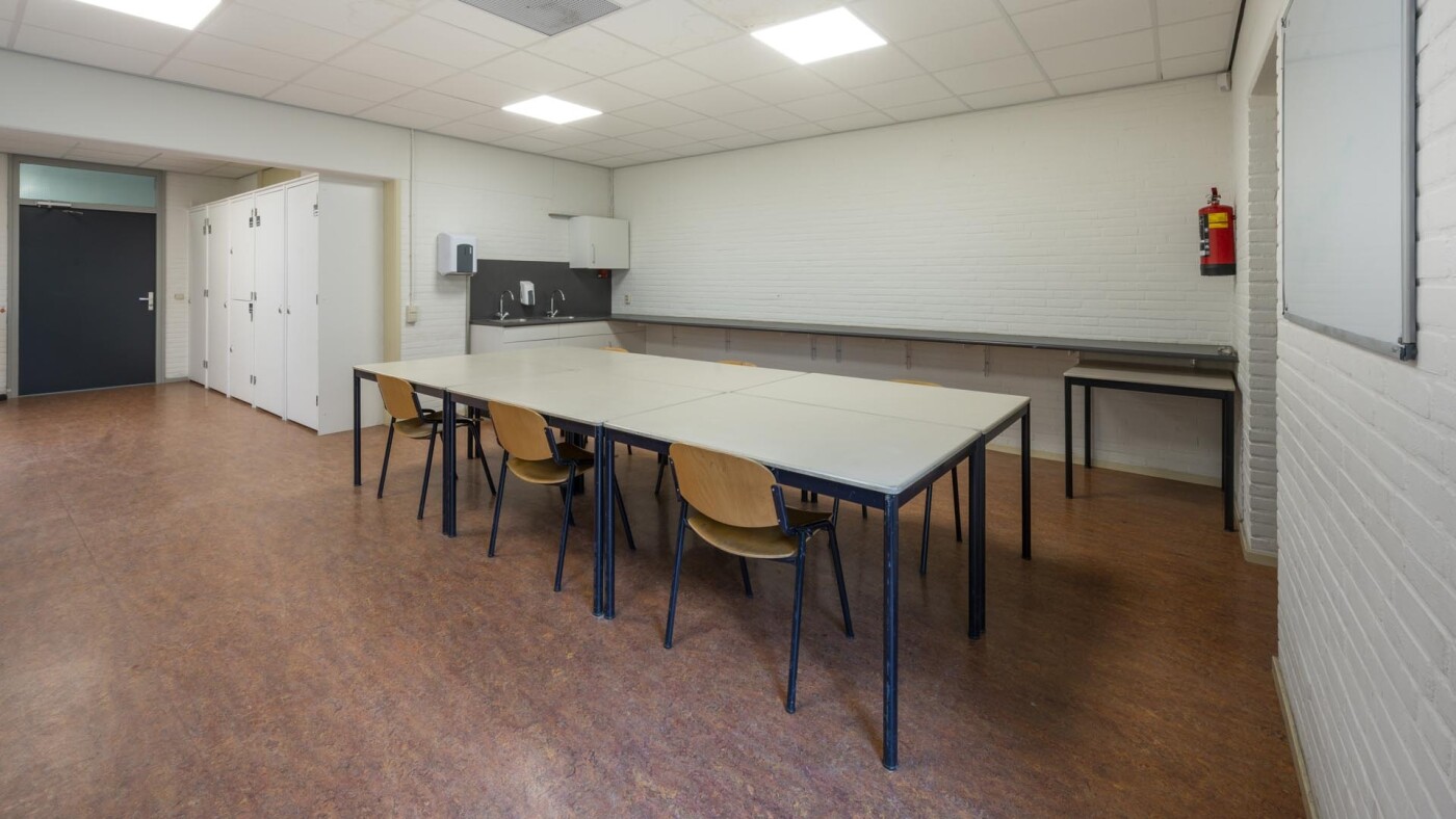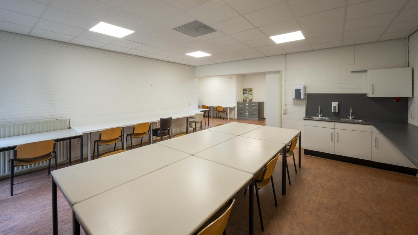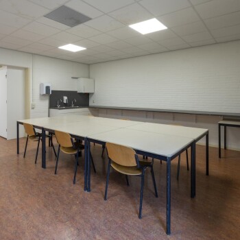 De ruimte is geschikt voor max. 25 personen, dit is mede afhankelijk van de opstelling van de tafels. De ruimte is voorzien tafels, stoelen, 2 spoelbakken, lang werkblad en WiFi. De ruimte dient na gebruik schoon te worden achtergelaten.