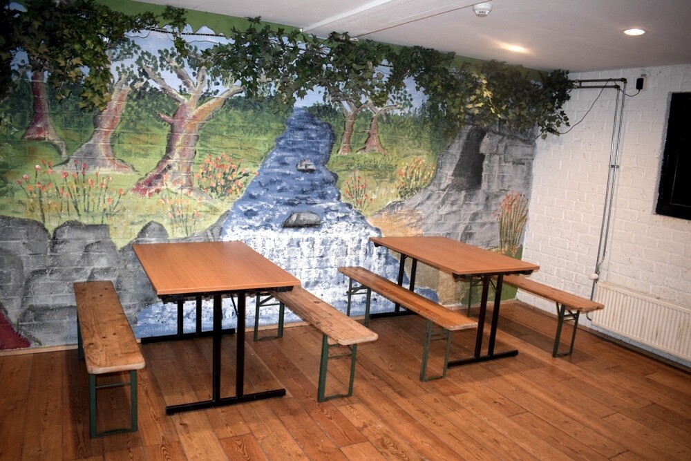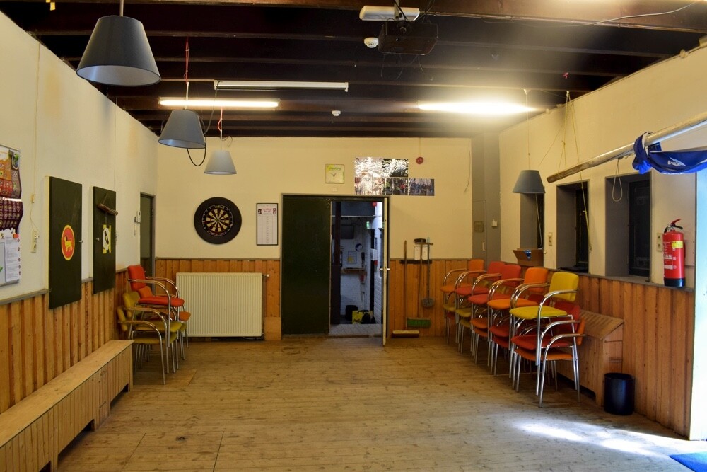De (verwarmde) blokhut is geschikt voor max. 25 personen en is voorzien van tafels, stoelen, WiFi, beamer (met scherm) en een professionele keuken.