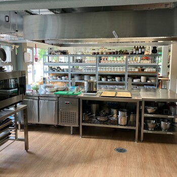 De (professionele) keuken is te huur en is geschikt voor max. 8-10 personen. De keuken is uitgerust met 2 proffesionele ovens, korfvaatwasmachine, 8 inductieplaten, borden en bestek voor 50 personen en allerhande divers keukengerei. Tevens is er gratis WiFi aanwezig.
