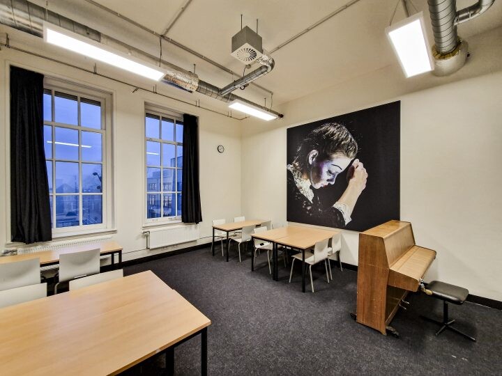Deze ruimtes zijn voorzien van een piano, stoelen (ca. 15), WiFi, klimaatbeheersing of airco. In 1 ruimte zijn meerdere tafels aanwezig.