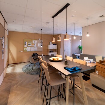 De sfeervolle teamkamer is in de avonden en weekenden (incidenteel te huur) en is voorzien van tafels, banken en stoelen en WiFi. Digibord en flipover zijn een optie.