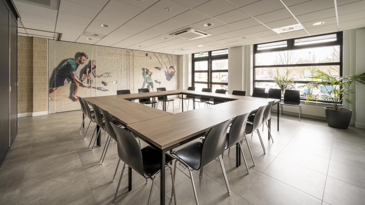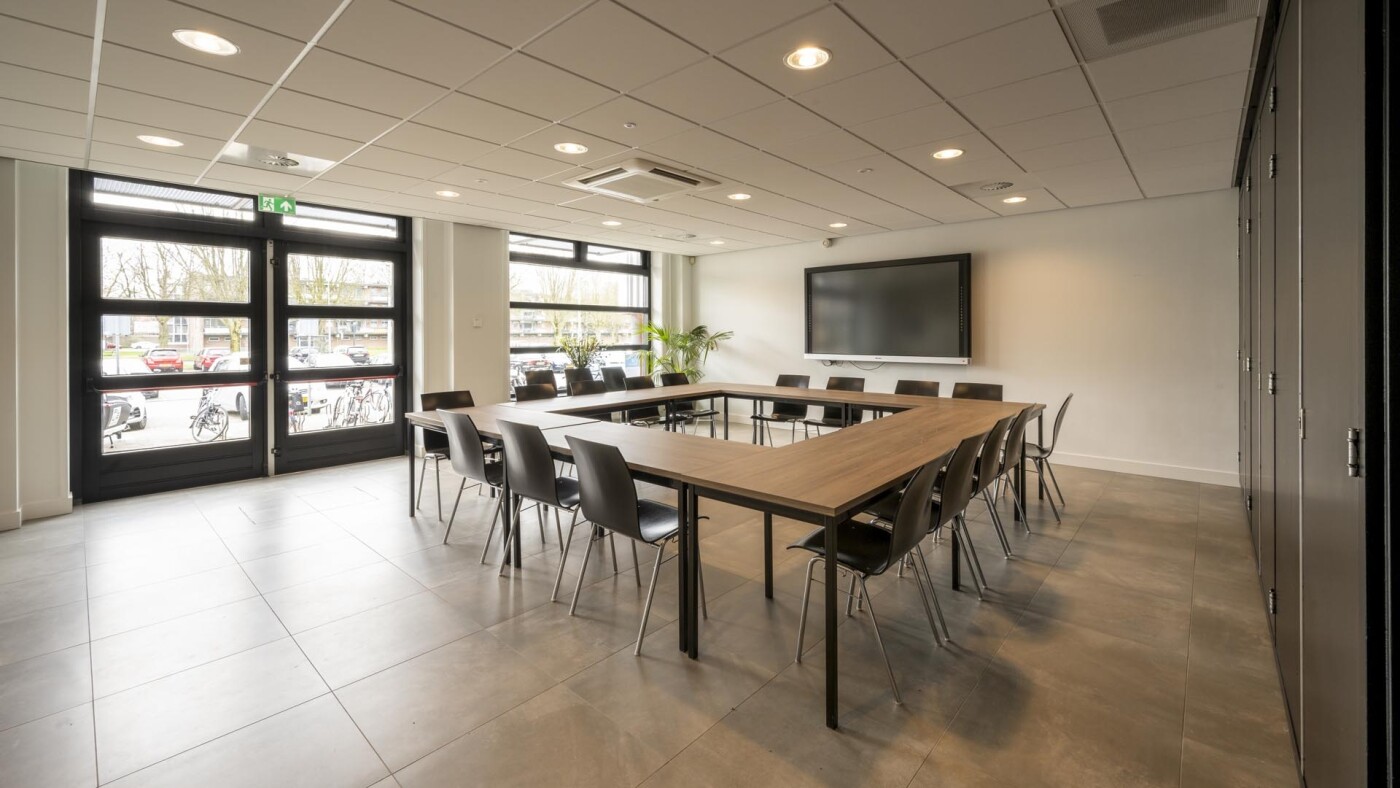 De vergaderzaal is voorzien van tafels, stoelen (in meerdere opstellingen neer te zetten), flipover, presentatiescherm, klimaatbeheersing en WiFi.