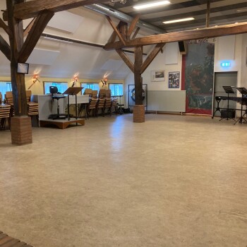 Let op! Deze ruimte is niet bedoeld voor feesten en/of partijen en het is niet toegestaan na 22.00 uur muziek te maken. Bands of groepen met te harde muziek (Denk aan steeldrums, versterkte muziek zoals bas of beats) kunnen wij onze ruimte helaas niet aan verhuren.