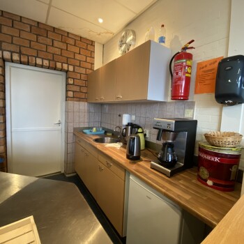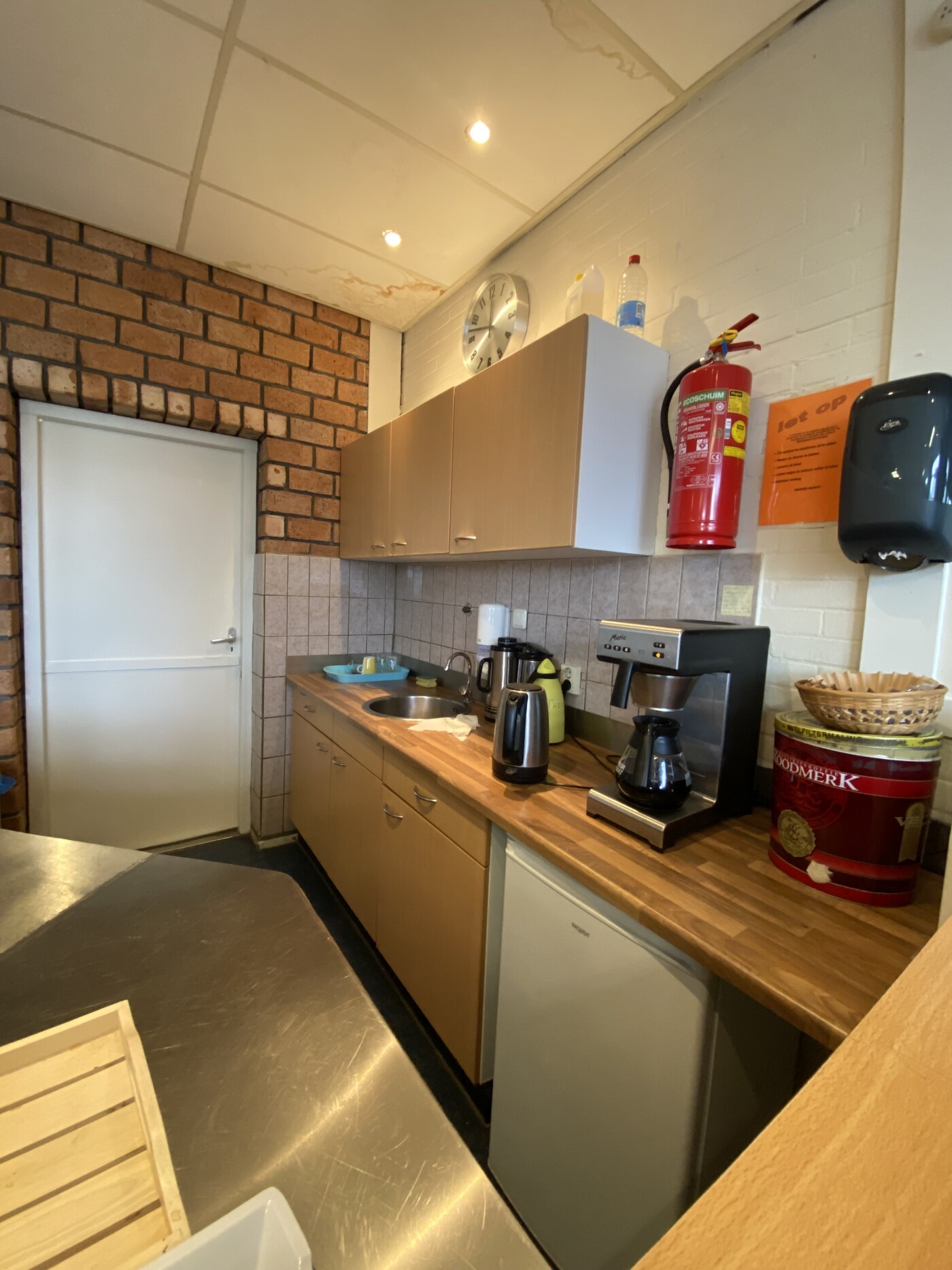 De keuken is te huur en is geschikt als werkruimte voor 3 personen en is voorzien van een gasfornuis, koelkast en diepvries. Ook zijn borden, bestek en glazen aanwezig. De keuken is niet geschikt als ruimte om cateringen voor te bereiden.