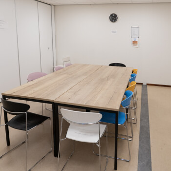 Zaal A is te gebruiken als kleine overleggruimte voor ca. 15 personen en is voorzien van tafels, stoelen, een flipover, ook is er WiFi aanwezig.